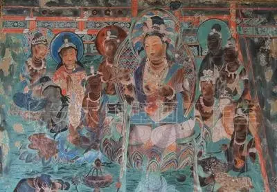 敦煌壁画上大量的运用了石青,有七样深淡明暗不同的颜色。