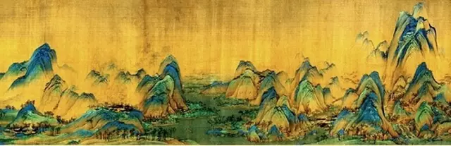 历史上最有名的石青画作王希孟的《千里江山图》,绢本手卷,青绿设色。山石则以大青绿设色,也就是在勾、皴后,先以赭石铺底,然后上石青石绿,层层叠加。石青石绿是矿物颜料,本来覆盖性就很强,经层层叠加,质感凝重,与整幅画的墨青、墨绿基调浑然一体,鲜艳而不媚俗。