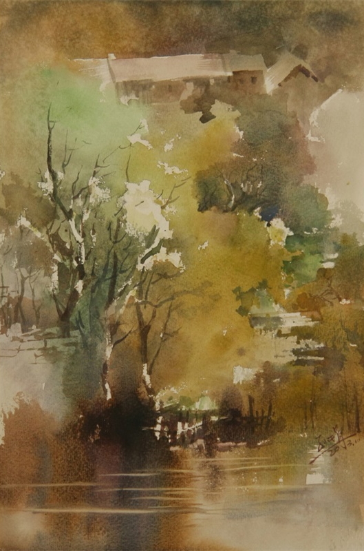 《梦回崂山·春》 100cmx130cm 水彩画 阿诗
